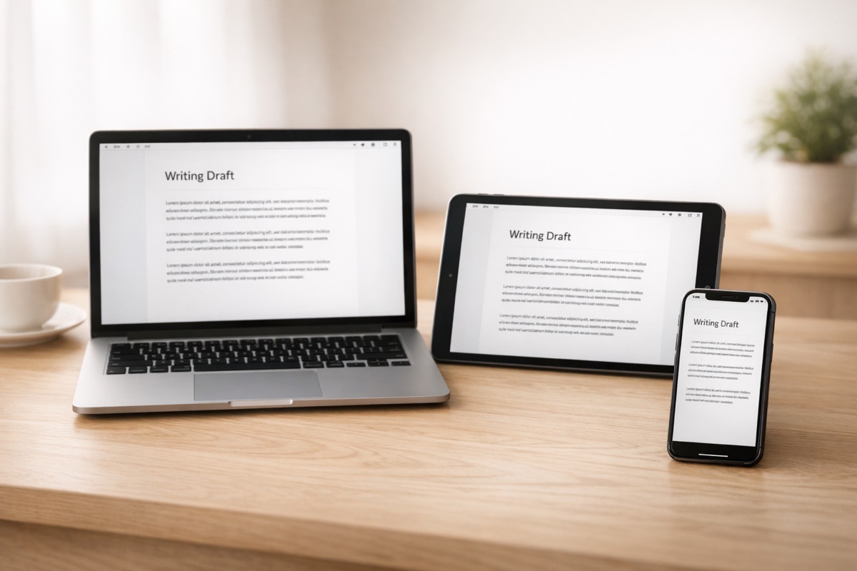 Most writers do not sit down at the same desk every time they write. Some days it is the laptop at home. Other days it is a tablet on the train or a phone during a lunch break. The problem is not finding time to write. It is that the draft is stuck on one device while you are somewhere else.
